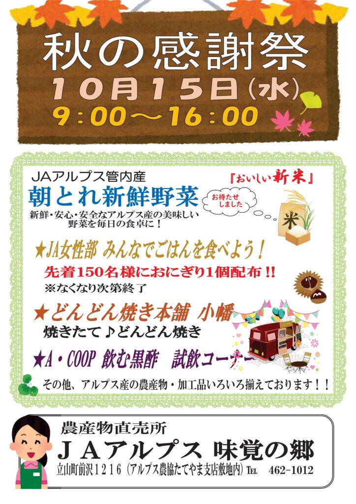 TOP > 味覚の郷「秋の感謝祭」開催のお知らせ