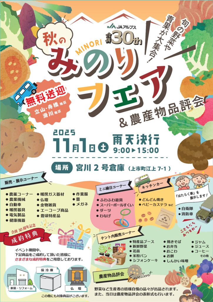 JAアルプス「秋のみのりフェア&農産物品評会」開催のお知らせ