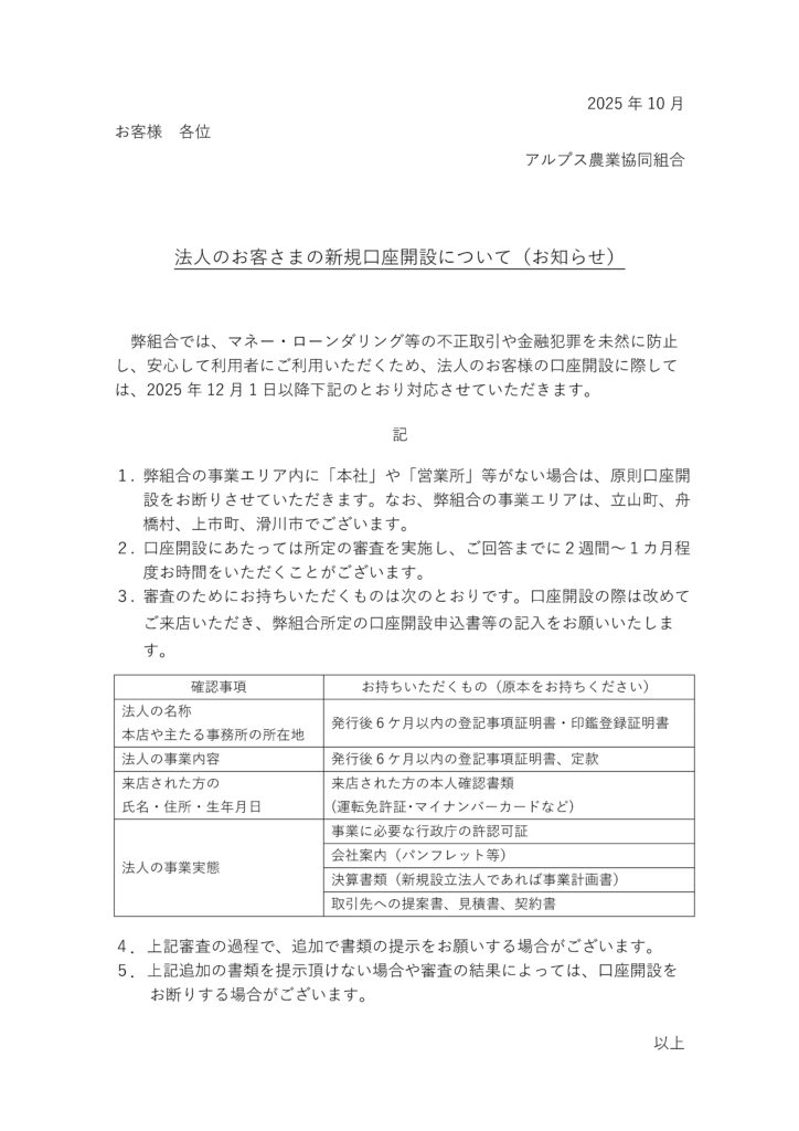 TOP > 法人のお客さまの新規口座開設について(お知らせ)