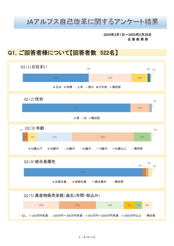TOP > 令和6年度 JAアルプス自己改革に関するアンケート結果